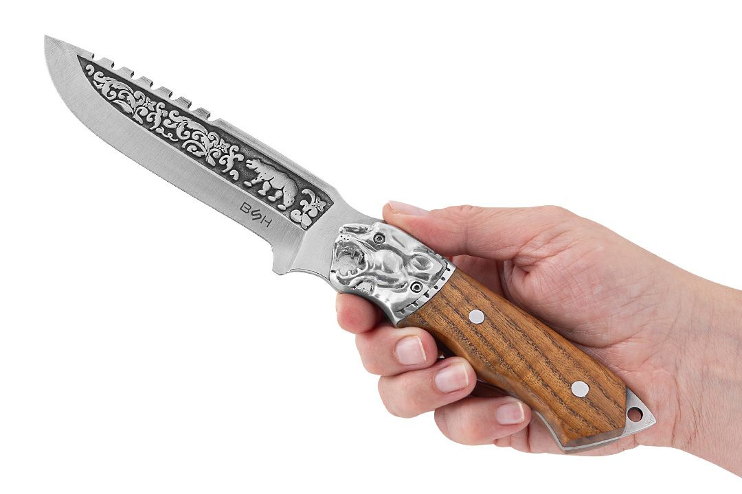Extrémně robustní a krásně zdobený lovecký nůž přizpůsobený těm nejtěžším úkolům.