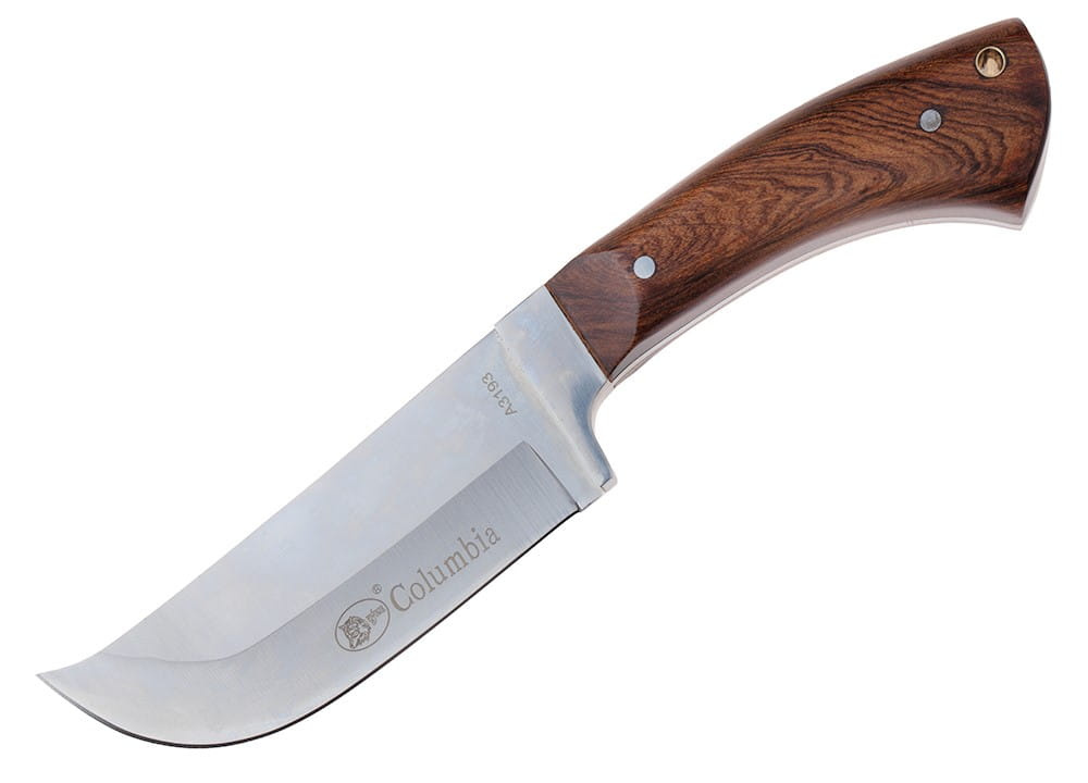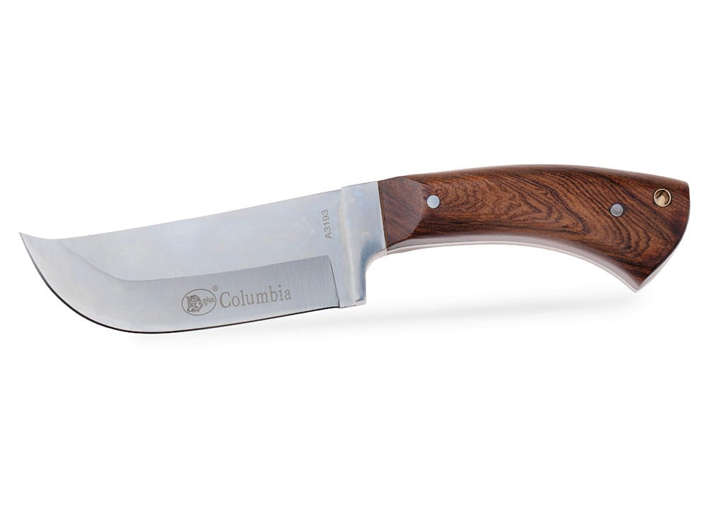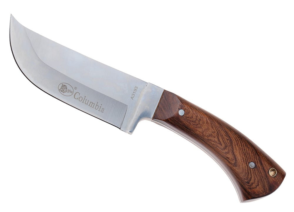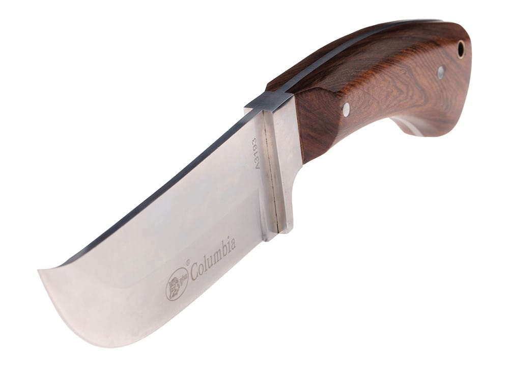 Pevná čepel s rovným profilem hřbetu má vyvýšený hrot, což je mimořádně užitečné například pro házení zvěře.